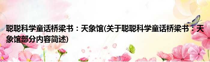导读 大家好,今天小方来说说一篇关于聪聪科学童话桥梁书:天象馆,关于聪聪科学童话桥梁书:天象馆部分内容简述的文章,那么现在就为大家来简单