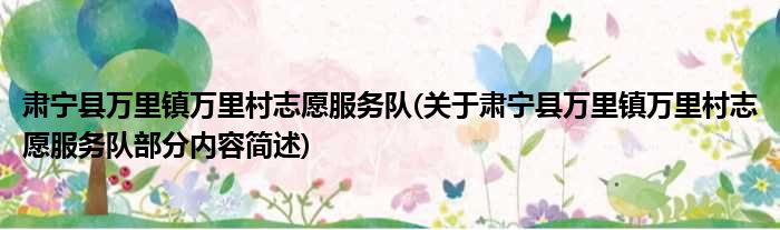 肃宁县万里镇万里村志愿服务队(关于肃宁县万里镇万里村志愿服务队部分内容简述)