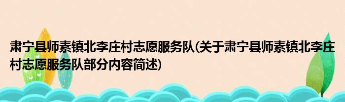 肃宁县师素镇北李庄村志愿服务队(关于肃宁县师素镇北李庄村志愿服务队部分内容简述)