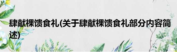 大家好,今天小方来说说一篇关于肆献祼馈食礼,关于肆献祼馈食礼部分内容简述的文章,那么现在就为大家来简单介绍下,希望对各位小伙伴们有所帮助。
