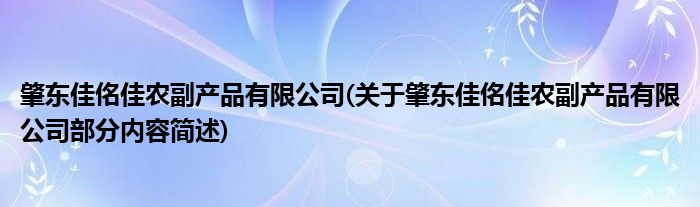 导读 大家好,今天小方来说说一篇关于肇东佳佲佳农副产品有限公司,关于肇东佳佲佳农副产品有限公司部分内容简述的文章,那么现在就为大家来简单