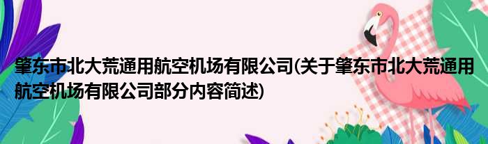 肇东市北大荒通用航空机场有限公司(关于肇东市北大荒通用航空机场有限公司部分内容简述)