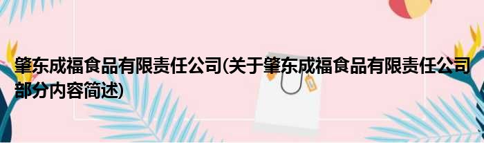 大家好,今天小方来说说一篇关于肇东成福食品有限责任公司,关于肇东成福食品有限责任公司部分内容简述的文章,那么现在就为大家来简单介绍下,希望对各位小伙伴们有所帮助。