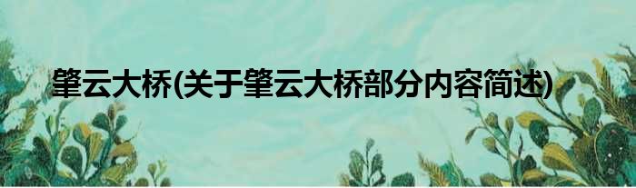 导读 大家好,今天小方来说说一篇关于肇云大桥,关于肇云大桥部分内容简述的文章,那么现在就为大家来简单介绍下,希望对各位小伙伴们有所帮助。