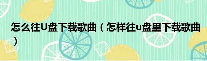 怎么往U盘下载歌曲(怎样往u盘里下载歌曲)