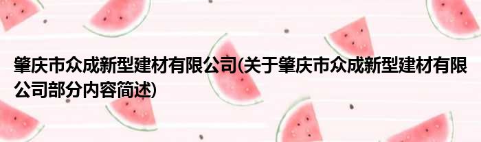 肇庆市众成新型建材有限公司(关于肇庆市众成新型建材有限公司部分内容简述)