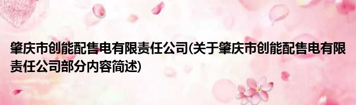 肇庆市创能配售电有限责任公司(关于肇庆市创能配售电有限责任公司部分内容简述)