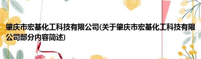 肇庆市宏基化工科技有限公司(关于肇庆市宏基化工科技有限公司部分内容简述)