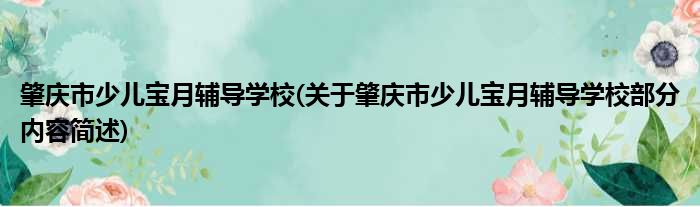 肇庆市少儿宝月辅导学校(关于肇庆市少儿宝月辅导学校部分内容简述)