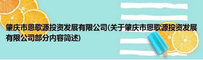 肇庆市恩歌源投资发展有限公司(关于肇庆市恩歌源投资发展有限公司部分内容简述)