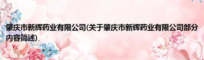 肇庆市新辉药业有限公司(关于肇庆市新辉药业有限公司部分内容简述)