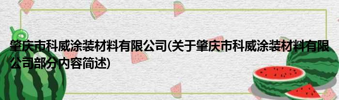 肇庆市科威涂装材料有限公司(关于肇庆市科威涂装材料有限公司部分内容简述)