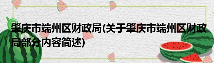 肇庆市端州区财政局(关于肇庆市端州区财政局部分内容简述)