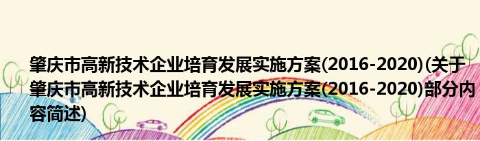 肇庆市高新技术企业培育发展实施方案(2016-2020)(关于肇庆市高新技术企业培育发展实施方案(2016-2020)部分内容简述)