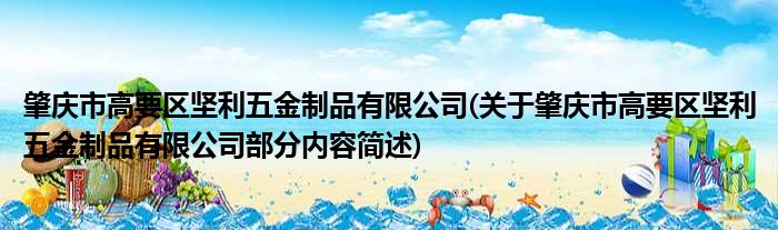 肇庆市高要区坚利五金制品有限公司(关于肇庆市高要区坚利五金制品有限公司部分内容简述)