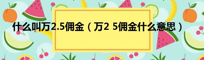 什么叫万2.5佣金(万2 5佣金什么意思)
