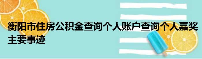 衡阳市住房公积金查询个人账户查询个人嘉奖主要事迹
