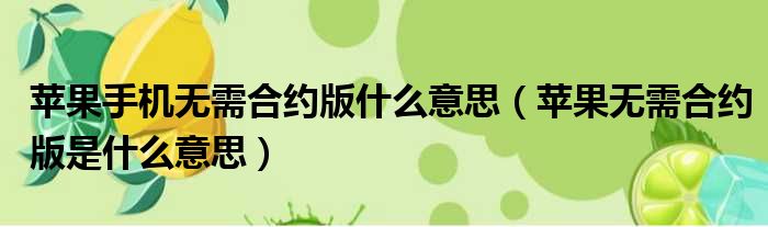 苹果手机无需合约版什么意思(苹果无需合约版是什么意思)