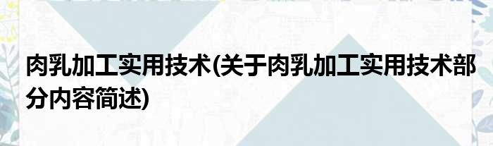 肉乳加工实用技术(关于肉乳加工实用技术部分内容简述)