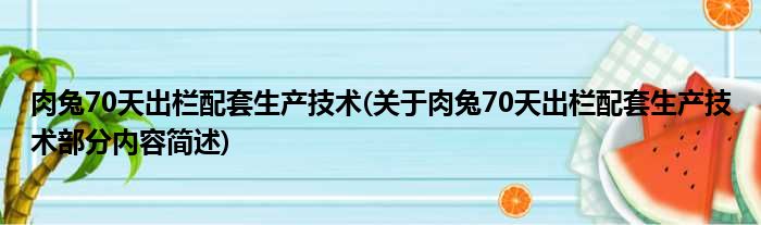 导读 大家好,今天小方来说说一篇关于肉兔70天出栏配套生产技术,关于肉兔70天出栏配套生产技术部分内容简述的文章,那么现在就为大家来简单介绍