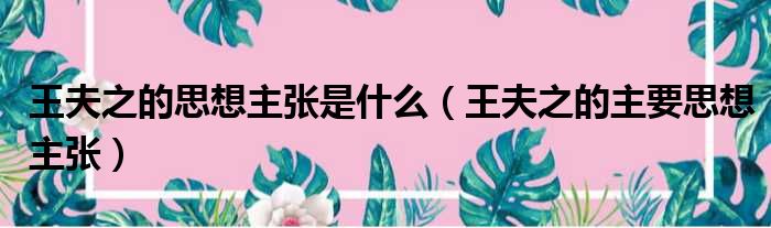 王夫之的思想主张是什么(王夫之的主要思想主张)