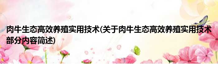 肉牛生态高效养殖实用技术(关于肉牛生态高效养殖实用技术部分内容简述)