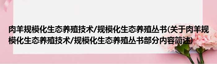 导读 大家好,今天小方来说说一篇关于肉羊规模化生态养殖技术 规模化生态养殖丛书,关于肉羊规模化生态养殖技术 规模化生态养殖丛书部分内容简述