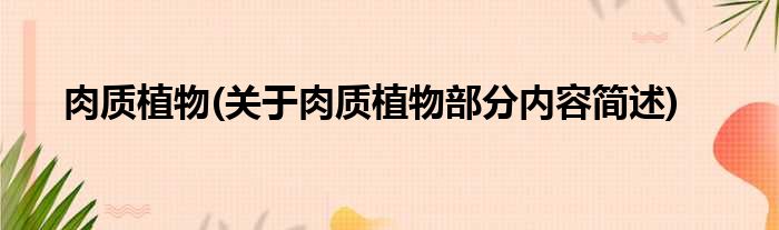 导读 大家好,今天小方来说说一篇关于肉质植物,关于肉质植物部分内容简述的文章,那么现在就为大家来简单介绍下,希望对各位小伙伴们有所帮助。