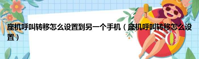 座机呼叫转移怎么设置到另一个手机(座机呼叫转移怎么设置)