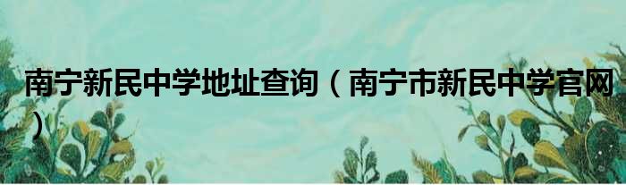 导读 大家好,小活来为大家解答以上的问题。南宁新民中学地址查询,南宁市新民中学官网这个很多人还不知道,现在让我们一起来看看吧!1、南宁市新