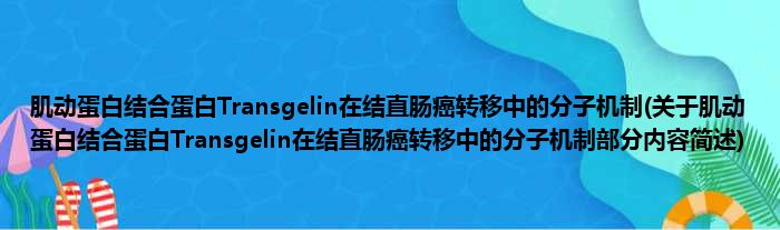 肌动蛋白结合蛋白Transgelin在结直肠癌转移中的分子机制(关于肌动蛋白结合蛋白Transgelin在结直肠癌转移中的分子机制部分内容简述)