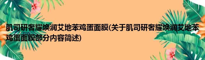 肌司研奢耀焕润艾地苯鸡蛋面膜(关于肌司研奢耀焕润艾地苯鸡蛋面膜部分内容简述)