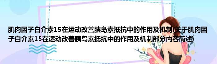 肌肉因子白介素15在运动改善胰岛素抵抗中的作用及机制(关于肌肉因子白介素15在运动改善胰岛素抵抗中的作用及机制部分内容简述)
