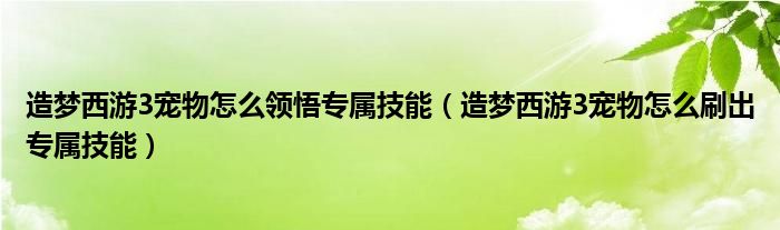 造梦西游3宠物怎么领悟专属技能(造梦西游3宠物怎么刷出专属技能)
