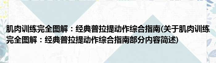 导读 大家好,今天小方来说说一篇关于肌肉训练完全图解:经典普拉提动作综合指南,关于肌肉训练完全图解:经典普拉提动作综合指南部分内容简述的
