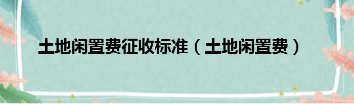 导读 大家好,小活来为大家解答以上的问题。土地闲置费征收标准,土地闲置费这个很多人还不知道,现在让我们一起来看看吧!1、土地闲置费是指在城
