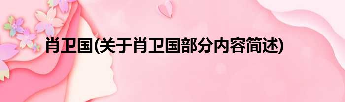 大家好,今天小方来说说一篇关于肖卫国,关于肖卫国部分内容简述的文章,那么现在就为大家来简单介绍下,希望对各位小伙伴们有所帮助。