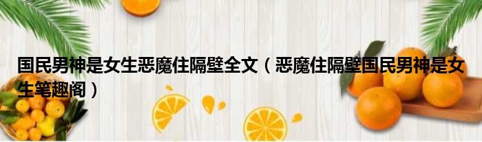 国民男神是女生恶魔住隔壁全文(恶魔住隔壁国民男神是女生笔趣阁)
