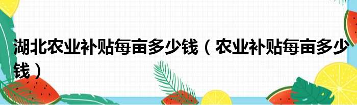 湖北农业补贴每亩多少钱(农业补贴每亩多少钱)