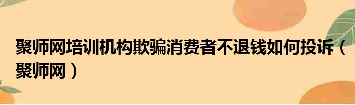 聚师网培训机构欺骗消费者不退钱如何投诉(聚师网)