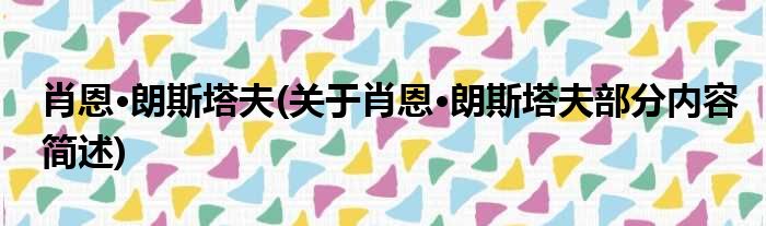 大家好,今天小方来说说一篇关于肖恩·朗斯塔夫,关于肖恩·朗斯塔夫部分内容简述的文章,那么现在就为大家来简单介绍下,希望对各位小伙伴们有所帮助。
