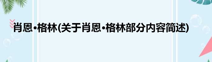 肖恩·格林(关于肖恩·格林部分内容简述)