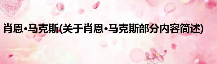 肖恩·马克斯(关于肖恩·马克斯部分内容简述)