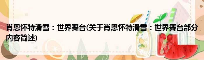 肖恩怀特滑雪:世界舞台(关于肖恩怀特滑雪:世界舞台部分内容简述)
