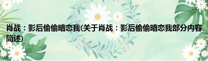 导读 大家好,今天小方来说说一篇关于肖战:影后偷偷暗恋我,关于肖战:影后偷偷暗恋我部分内容简述的文章,那么现在就为大家来简单介绍下,希望