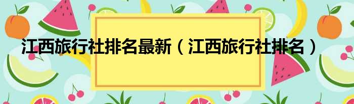 导读 大家好,小活来为大家解答以上的问题。江西旅行社排名最新,江西旅行社排名这个很多人还不知道,现在让我们一起来看看吧!1、找旅行社不必非