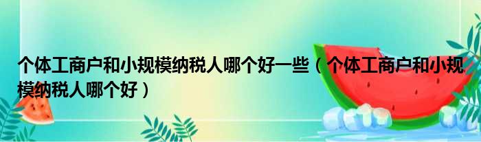 个体工商户和小规模纳税人哪个好一些(个体工商户和小规模纳税人哪个好)