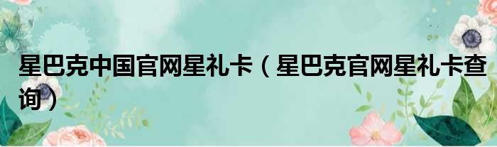 星巴克中国官网星礼卡(星巴克官网星礼卡查询)