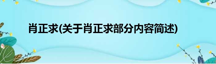 导读 大家好,今天小方来说说一篇关于肖正求,关于肖正求部分内容简述的文章,那么现在就为大家来简单介绍下,希望对各位小伙伴们有所帮助。