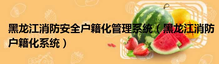 黑龙江消防安全户籍化管理系统(黑龙江消防户籍化系统)
